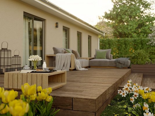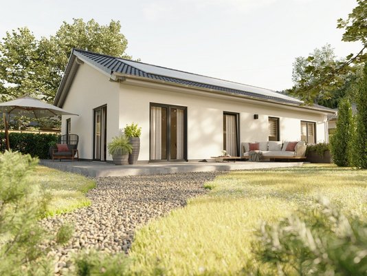 Ein weiterer Pluspunkt: Bungalows lassen sich sehr flexibel gestalten. Von kompakt bis großzügig, von klassisch bis modern - alles ist möglich, solange das Grundstück ausreichend Platz bietet. Ob offene Grundrissgestaltung mit fließenden Übergängen zwischen Wohnküche und Wohnzimmer oder klare Trennung zwischen Wohn- und Schlafbereich: Auf einer Ebene kann man Räume großzügig verbinden, was dem barrierefreien Konzept entgegenkommt. Zudem erlaubt es die ebenerdige Bauweise, große Fenster und Terrassentüren einzuplanen, die den Garten quasi zum Teil des Wohnraums machen - selbstverständlich ohne Absatz dazwischen.