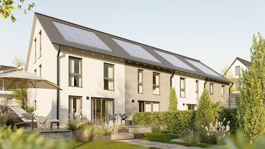 Nachwachsende oder recycelbare Baustoffe, z. B. Holz aus nachhaltiger Forstwirtschaft oder Dämmungen aus recyceltem Material, kommen verstärkt zum Einsatz. Moderne Häuser werden so konzipiert, dass sie ressourcenschonend gebaut sind und im Betrieb wenig verbrauchen. Das schont die Umwelt und Ihren Geldbeutel gleichermaßen. Übrigens erfüllen unsere Massivhäuser natürlich sämtliche aktuellen Vorgaben des Gebäudeenergiegesetzes (GEG 2024). Seit 2024 müssen Neubauten in Deutschland mindestens dem früheren Effizienzhaus-55-Standard entsprechen und 65 % erneuerbare Energien bei der Heizungsversorgung nutzen. Mit einem Town & Country Haus liegen Sie hier auf der sicheren Seite - wir planen standardmäßig mit zukunftsfähiger Technik wie Wärmepumpe und Lüftungsanlage, sodass Ihr Neubau sofort ein klimafreundliches Haus ist.
