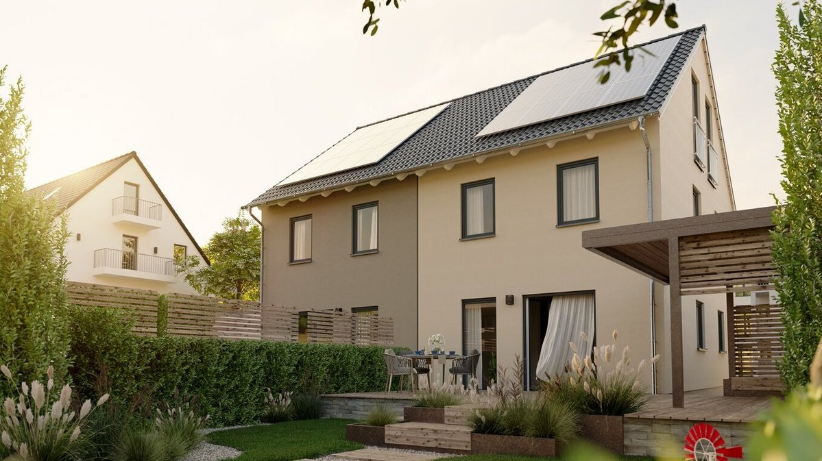 Doppelhäuser haben von Haus aus einen Vorteil: Durch die gemeinsame Wand ist die Gebäudehülle kompakter, was zu weniger Wärmeverlust führt. Das hilft enorm, strenge Effizienzstandards zu erreichen. Wenn Sie etwa ein KfW-Effizienzhaus 40 anstreben (für die oben erwähnte Förderung „Klimafreundlicher Neubau“), kommen Ihnen die baulichen Gegebenheiten entgegen. Unsere Town & Country Massivhäuser sind bereits im Standard sehr energieeffizient (entsprechen etwa Effizienzhaus 55 und enthalten zeitgemäße Technik wie Wärmepumpen). Auf Wunsch können wir Ihr Doppelhaus so auslegen, dass es die Effizienzhaus-40-Anforderungen erfüllt - z.B. durch zusätzliche Dämmung, eine noch effizientere Haustechnik und ggf. nachhaltige Baustoffwahl. Es ist problemlos möglich, ein Doppelhaus als KfW-40-Niedrigenergiehaus zu bauen und damit nicht nur Förderkredite zu erhalten, sondern auch künftig extrem niedrige Heizkosten zu genießen. Viele Bauherren gehen noch weiter und machen ihr Doppelhaus zukunftssicher: KfW 40 plus mit Photovoltaik oder sogar das Qualitätssiegel Nachhaltiges Gebäude (QNG) für besonders klimafreundliches Bauen sind erreichbar, wenn gewünscht. Kurz gesagt: Auch im Doppelpack können Sie ein grünes Vorzeigehaus bauen! Die kompakte Form des Doppelhauses reduziert nicht nur Energieverlust, sondern spart auch Ressourcen - zwei Familien teilen sich ein Gebäude, was im Bau weniger Material erfordert als zwei separate Häuser (das schlägt sich sogar in der CO₂-Bilanz positiv nieder).