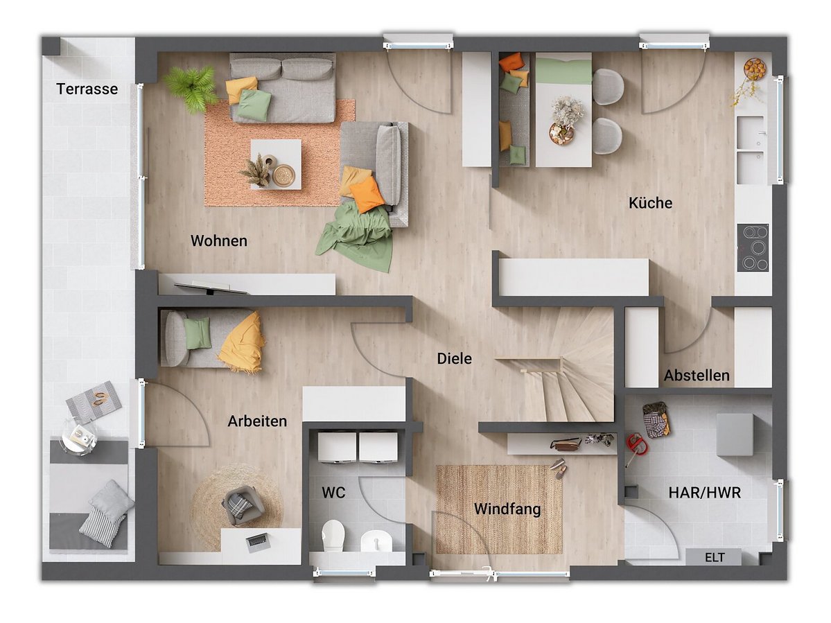 Ja. Einer der großen Vorteile beim Bauen mit uns (Weinrath Immobilien GmbH, Town & Country Haus) ist, dass jedes Haus individuell geplant werden kann. Du bist nicht auf einen starren Kataloggrundriss festgelegt. Zwar haben wir erprobte Hausentwürfe (auch Stadtvillen-Modelle wie Stadtvilla 145), die als Ausgangspunkt dienen können, aber letztlich wird der Grundriss nach deinen Wünschen maßgeschneidert. Möchtest du zum Beispiel die Küche anders positionieren, zusätzliche Fenster, einen Wintergarten oder einen größeren Technikraum? - All das setzen wir für dich um. Unsere Architekten und Planer hören genau zu, was dir wichtig ist: Brauchst du ein Arbeitszimmer? Planen wir. Willst du eine Ankleide am Schlafzimmer? Kein Problem. Selbst die Innenwände können weitgehend so verschoben werden, wie es für dich passt, solange die Statik es zulässt. Durch die zwei Vollgeschosse hast du ohnehin mehr Freiheiten als bei vielen anderen Häusern. Viele unserer Kunden schätzen, dass sie ihre Ideen einbringen können und wir gemeinsam den idealen Grundriss entwickeln - manchmal entstehen so ganz neue Lösungen, an die man am Anfang gar nicht gedacht hat. Natürlich stehen wir dir auch beratend zur Seite: Unsere Erfahrung hilft, deinen Grundriss nicht nur schön, sondern auch funktional und zukunftssicher zu machen. Am Ende soll jedes Zimmer dort sein, wo du es haben willst, und die Abläufe im Haus (Wege, Türen, Anschlüsse) sollen stimmen. Also trau dich ruhig, deine Vorstellungen einzubringen - wir lieben es, Häuser zu bauen, die so einzigartig sind wie ihre Bauherren.