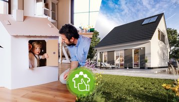 Wenn Sie die Kosten im Blick behalten und günstig bauen wollen, sollten Sie an Fläche sparen. Denn: Jeder Quadratmeter kostet im Schnitt rund 2.100 Euro. (Stand: 2022) Überlegen Sie, wo Sie wirklich Platz benötigen und wo Sie auf einen großen Raum verzichten können. Ein offener Wohn-Ess-Bereich mit großen Fenstern erzeugt zudem „Größe“ – wenn auch nur optischer Natur. Kleine und kompakte Häuser von Town & Country Haus sind clever geplant und bieten vielfältige Grundrissvarianten.